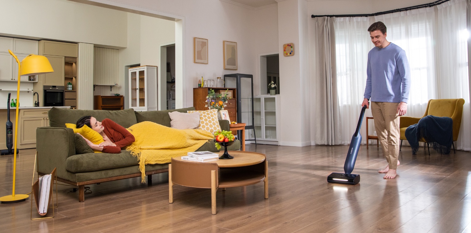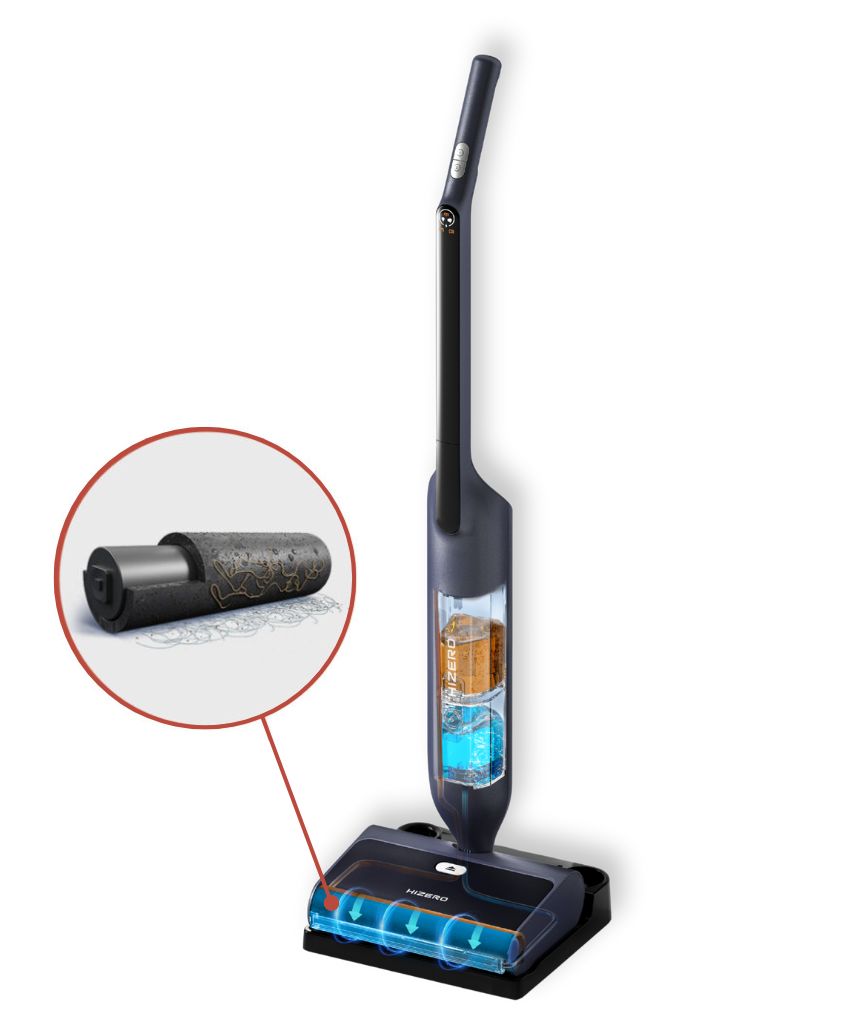 Hizero setzt auf eine Reinigung ohne Saugfunktion. Das bedeutet: Hizero reinigt den Boden ohne zusätzliche Filter, weil Staub nass aufgenommen und nicht in die Umgebung ausgeblasen wird. Diese Technologie verbraucht weniger Energie und sorgt für eine saubere, frische Raumluft.